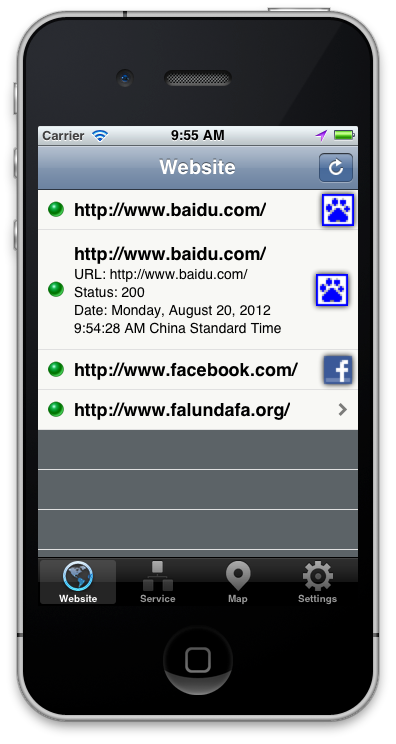 Tap on the website, you shall see the detailed status of the website, including URL, status code, date performed, etc.