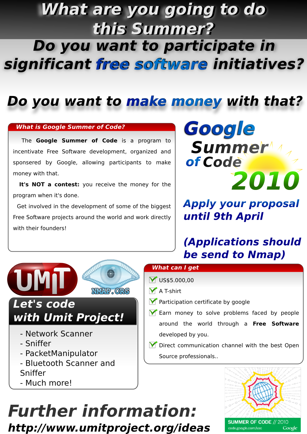 This year, Umit Project was not accepted as a mentoring organization for Google Summer of Code as Google folks wanted to renew the participating organizations (several others like Fedora and PHP were turned down this year as we were).