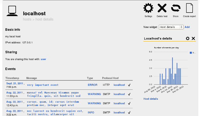 To start just register a new accout at . After pressing "Register account" button you should receive a mail with an activation link. Click it and that's it--you can log in! Then set up your servers to report events to your account [9]. Now you can monitor your network the way you never did!